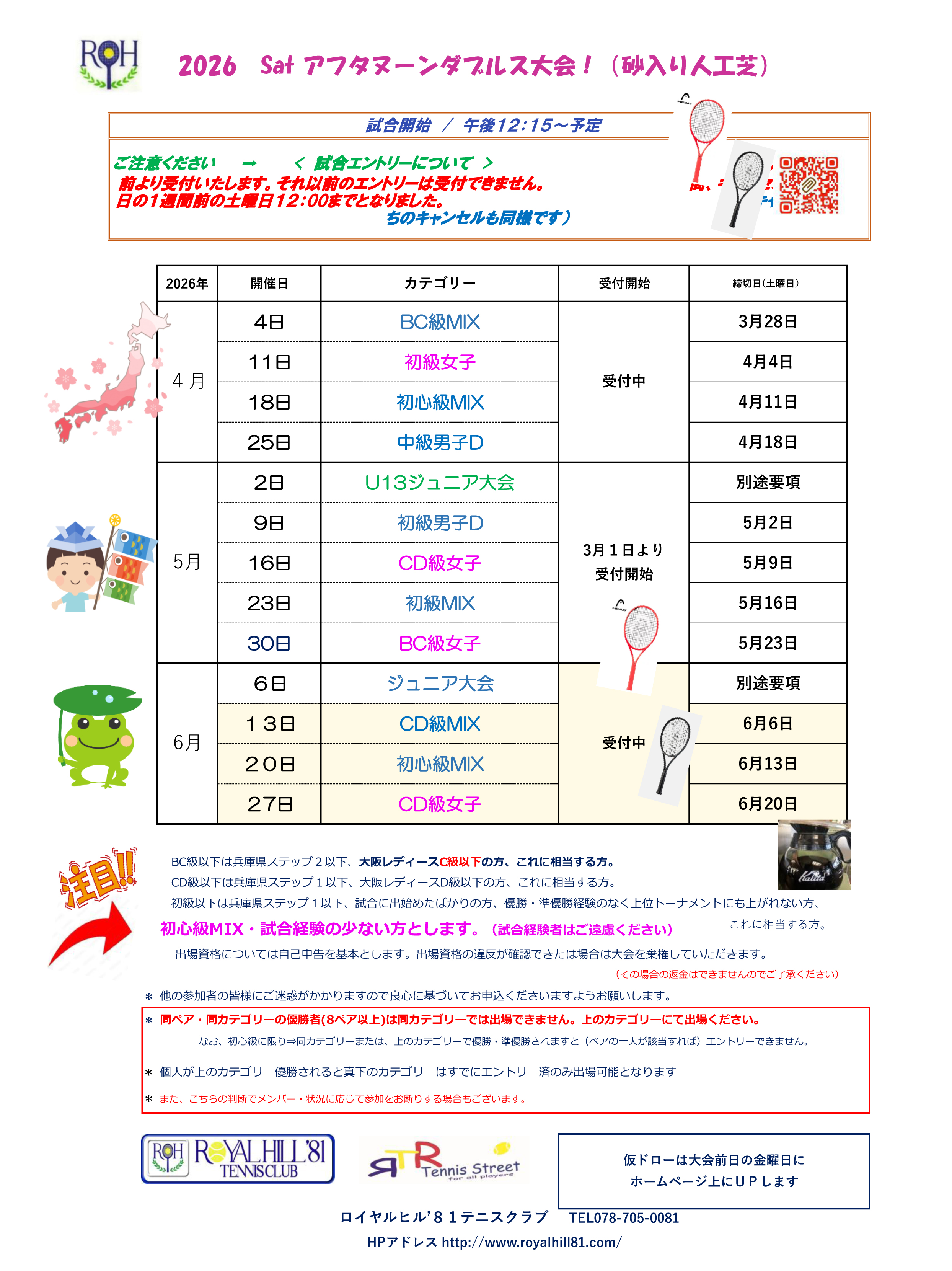2026春季みんなでテニス【親睦団体戦】受付中!