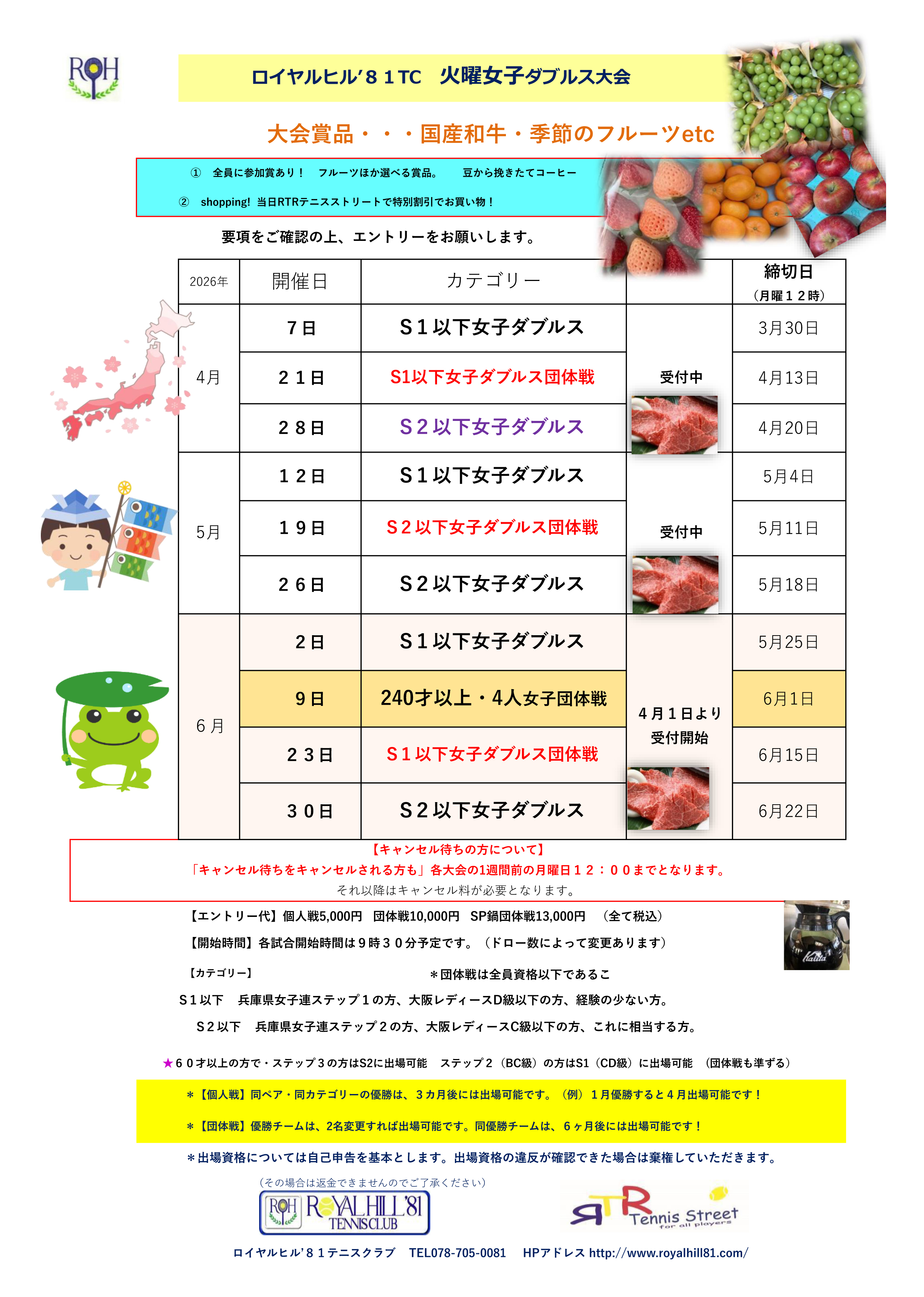 ・各大会の締切日以降のキャンセルは受付いたしておりません。
